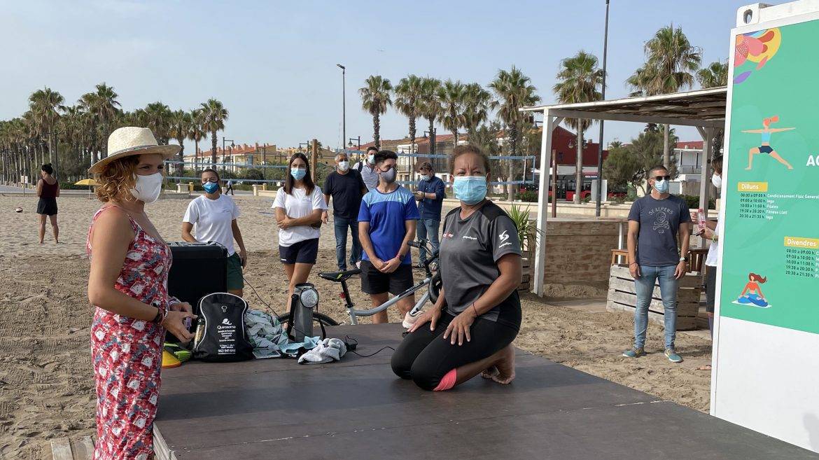 Pilar Bernabé anima a los vecinos a disfrutar de la playa de la ciudad y de la vida saludable con el programa de actividades de la Fundación Deportiva Municipal.