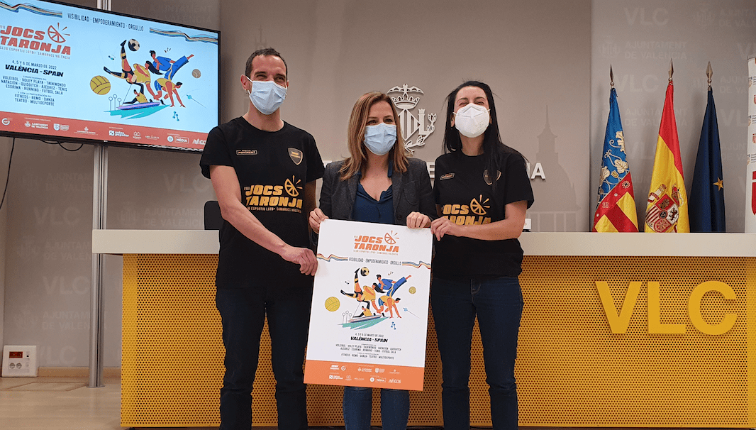 S’ha presentat la VIII Edició d els Jocs Taronja, uns jocs esportius organitzats pel club esportiu Samarucs-LGTBI+, que se celebraran els dies 4, 5 i 6 de març i acolliran diverses disciplines esportives com a Taekwondo, Voley o Dansa. L’acte de presentació ha estat encapçalat per la regidora d’Esports, Pilar Bernabé, que ha estat acompanyada del president de Samarucs, Javier Gil, i la coordinadora del club, Angélica Sáenz. Bernabé ha destacat la implicació de la ciutat de València amb el LGTBI+ en l’esport, ja que a més dels Jocs Taronja, València també és la seu dels pròxims Gay Games: “Els Jocs tenen ja la seua pròpia trajectòria però des de l’Ajuntament volem que comencen a ser des de l’any 2022 un aperitiu per al que seran els Gay Games”.