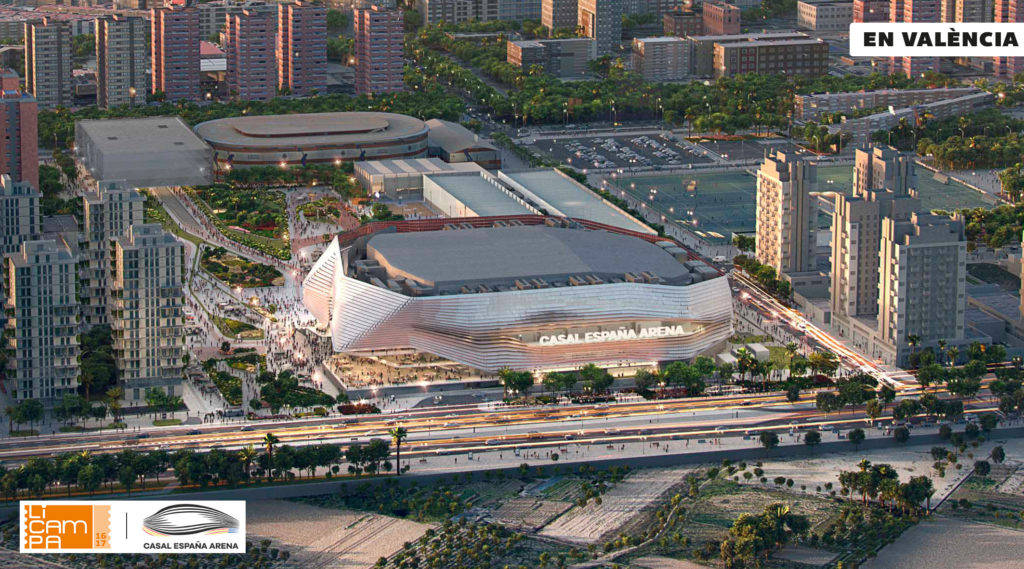 El pabellón se ubica sobre la parcela adjudicada de 21.500 metros cuadrados situada en las calles Ángel Villena, Bomber Ramon Duart y Antonio Ferrandis (junto a L’Alqueria del Basket y el Pavelló Font de San Lluís) de València, contará con una capacidad máxima de 15.600 espectadores en modo basket y de 18.600 en modo concierto. En su totalidad, este espacio ocupará una superficie total construida de aproximadamente 47.000 metros cuadrados.