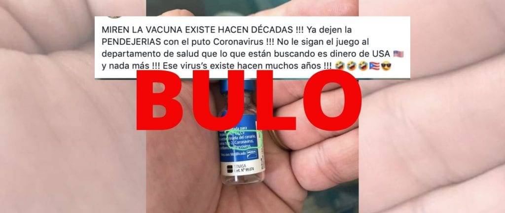 Uno de los últi­mos bulos que están cir­cu­lan­do en las redes socia­les es una ima­gen de una supues­ta vacu­na con­tra el Covid-19, que supues­ta­men­te ven­dría a demos­trar que el virus era cono­ci­do des­de hace tiem­po y que exis­tía ya una vacu­na para pre­ve­nir­lo.