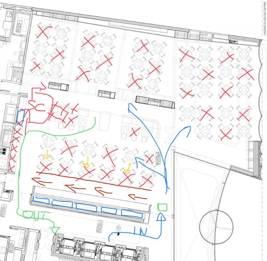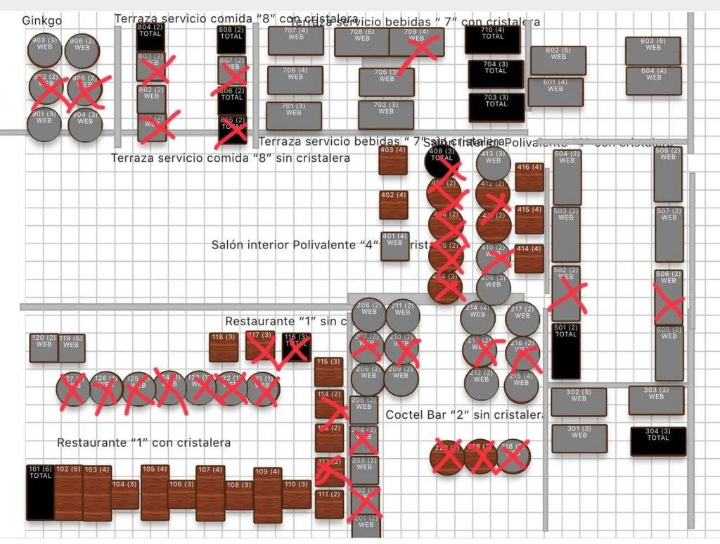 Javier Pérez Jiménez calcula que el aforo de los dos restaurantes en plantas bajas (800 y 250 personas) deberá reducirse entre un tercio y la mitad. En la terraza Ginkgo, de 1.200 metros cuadrados, prevé pasar de un máximo de 300 a 200 personas. Ya no habrá cola en la calle para subir a la terraza, como ha pasado en los últimos veranos. Será obligatorio reservar.