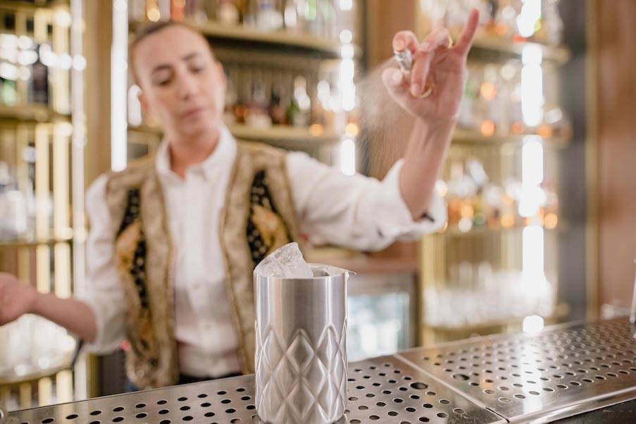 ¿Cómo se puede redondear la experiencia? Pues todavía hay más ingredientes, porque de Esther Medina-Cuesta, profesional de prestigio internacional, ha diseñado para el Hotel Palacio Vallier el singular y frutal Big Spender; el ahumado Wanderlust, que homenajea la coctelería tiki; y el sofisticado y distinguido Brisa de Oro, que se inspira en la naranja y la luz de València. Los cócteles se pueden disfrutar en dos espacios exclusivos. Adyacente al lobby, y con acceso independiente, está el Lladró Lounge Bar. Constituye un sofisticado bar museo, inspirado en las coctelerías de los años 30, donde se condensa el espíritu lujoso del hotel y se exhiben las piezas de diseño de Lladró. También desde la exclusiva azotea del edificio, con vistas privilegiadas sobre las cúpulas de la ciudad, y en especial sobre los monumentos del centro.