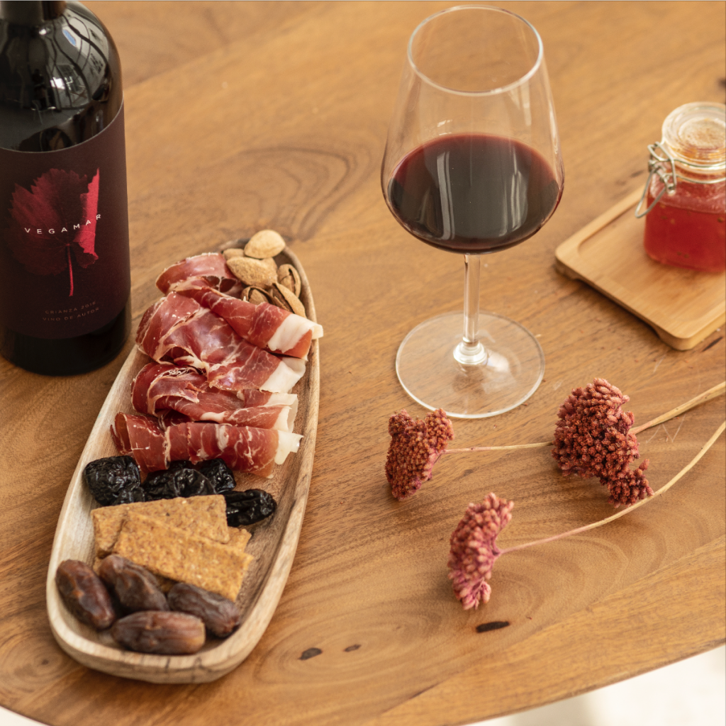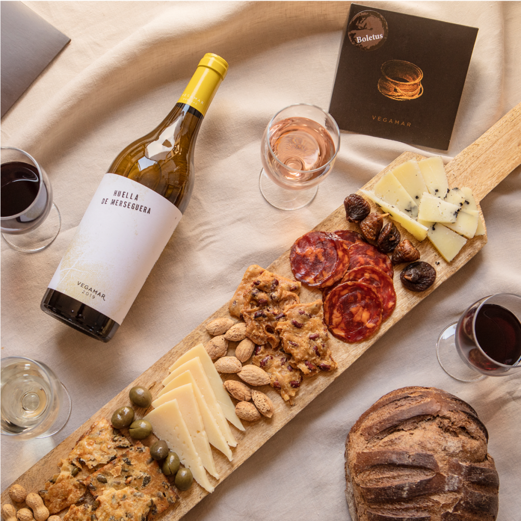Otra opción, son las catas mari­da­das pro­duc­tos gour­met Vega­mar Heren­cia del mar y de la tie­rra. Para los aman­tes del mar, sería una cata de blan­cos y espu­mo­sos mari­da­do con las con­ser­vas del mar como la ven­tres­ca o las zam­bu­ri­ñas. Y de la tie­rra, mari­da­je de ibé­ri­cos Vega­mar. El blan­co Hue­lla de Mer­se­gue­ra con que­so ibé­ri­co Vega­mar, el Hue­lla de Syrah con jamón ibé­ri­co Vega­mar y el Crian­za de Autor con lomo ibé­ri­co Vega­mar.