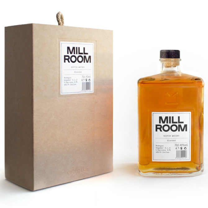 Su proceso de elaboración y tiempo de envejecimiento de 8 años, son las claves de su marcado y característico sabor. Mill Room se encuentra dentro de la categoría blended, un tipo de whisky elaborado a partir de una mezcla de Single Malt, que le aporta el carácter, en un 50% y en un 50% de grano, que le da la finura y el equilibrio.