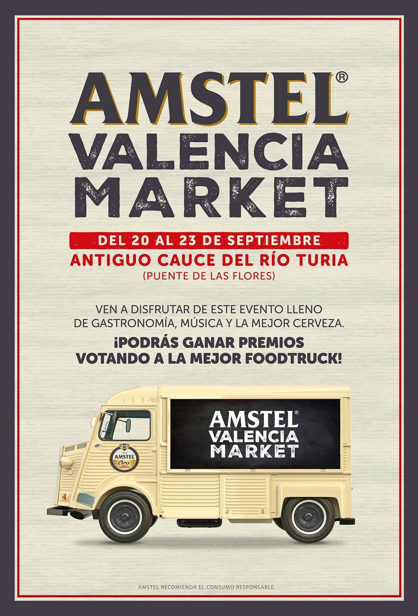 La tercera edición de AMSTEL VALENCIA MARKET llega del 20 al 23 de septiembre con formato renovado. Amstel, única cerveza de marca de gran consumo que se elabora en la Comunitat Valenciana, patrocina este evento como muestra de apoyo a la gastronomía local y para dinamizar las propuestas de ocio en la ciudad. Una cita que reúne a una veintena de food trucks valencianos y entre los que se va a reconocer al mejor.
