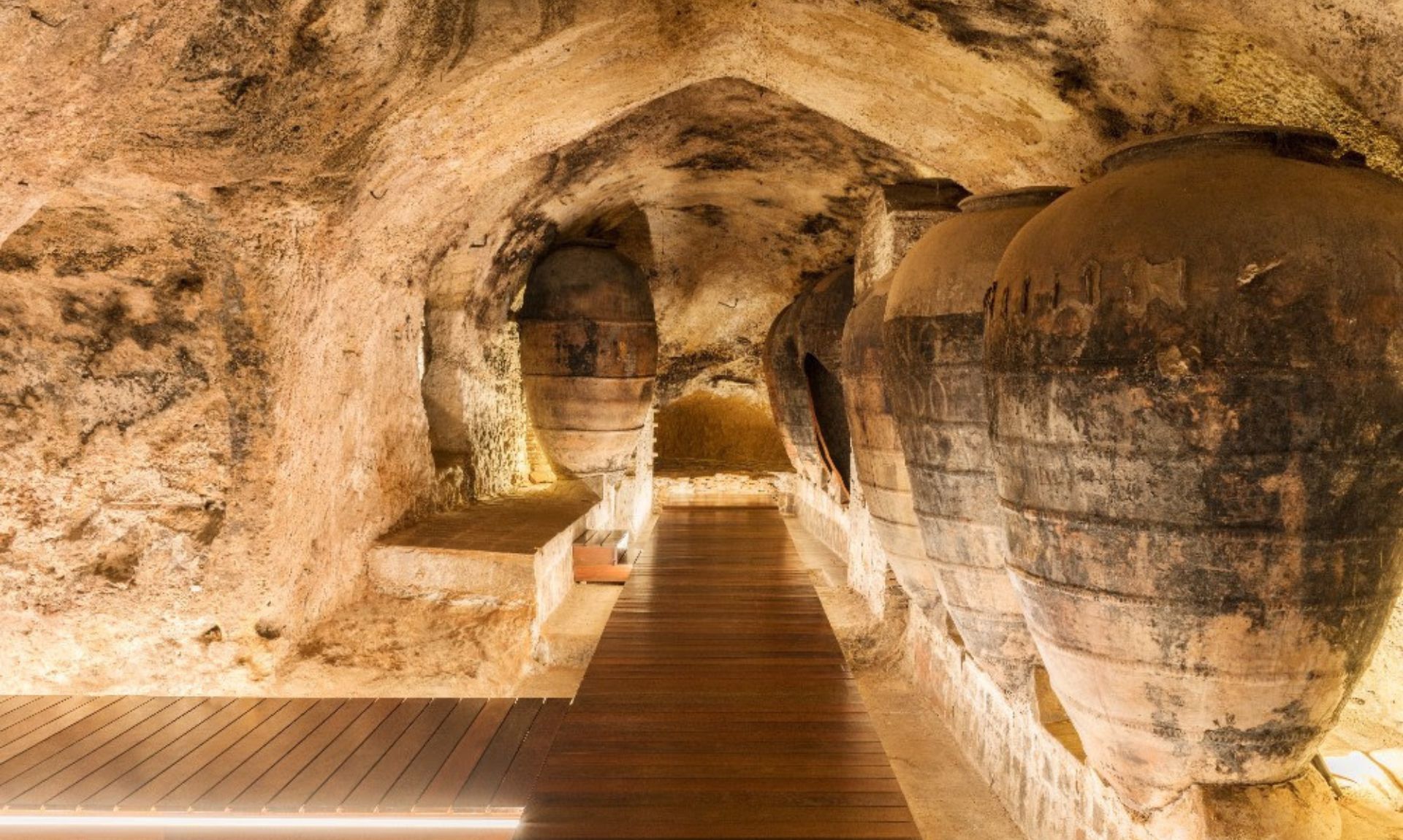 Ubicada en el barrio medieval de La Villa, en pleno corazón del casco antiguo, la bodega invita a recorrer un laberinto subterráneo que transporta al visitante a los orígenes de la viticultura en la comarca. Se trata de cuevas excavadas en la roca desde el siglo VI a. C., donde todavía se conservan tinajas, lagares y sistemas originales de almacenamiento y conducción del vino.
