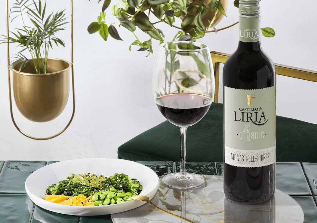 Cas­ti­llo de Liria orga­nic tin­to — eco­ló­gi­co y vegano cuyas varie­da­des de uva son Monas­trell y Shi­raz, sien­do su deno­mi­na­ción de ori­gen Ali­can­te. Su color es rojo pico­ta. Des­ta­ca por su aro­ma inten­so a cirue­la negra con notas de lilas y vai­ni­lla. Tie­ne un buen paso de boca y gran per­sis­ten­cia, dejan­do recuer­dos ele­gan­tes y tos­ta­dos.