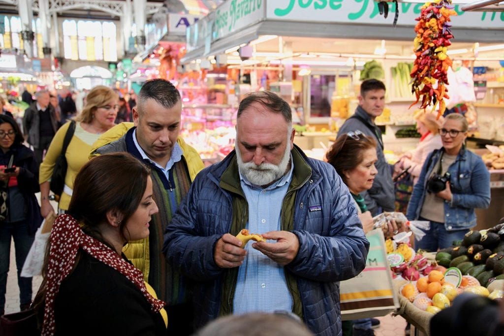 Acompañado por su equipo de colaboradores, José Andrés ha recorrido esta mañana el Mercado Central e incluso ha comprado y degustado algunos productos en sus puestos. El cocinero ha definido los mercados, además, como lugares “mágicos”, que permiten a muchas personas conocer productos que nunca habían visto y ha afirmado que “a quien viene de fuera le deja embobado”, no solo ante la presencia de tal variedad de productos sino también por la historia que hay detrás, como “punto de unión a través de los siglos, de muchísimas culturas, ya no solo de lo local sino de sitios un poco más lejanos que los convierte en un lugar, incluso, de aprendizaje”.