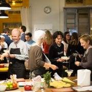 Cla­se de coci­na con chef, pro­duc­tos del Mer­ca­do Cen­tral, pla­tos de últi­ma ten­den­cia, comi­da de todo lo coci­na­do y mari­da­je con cada rece­ta.