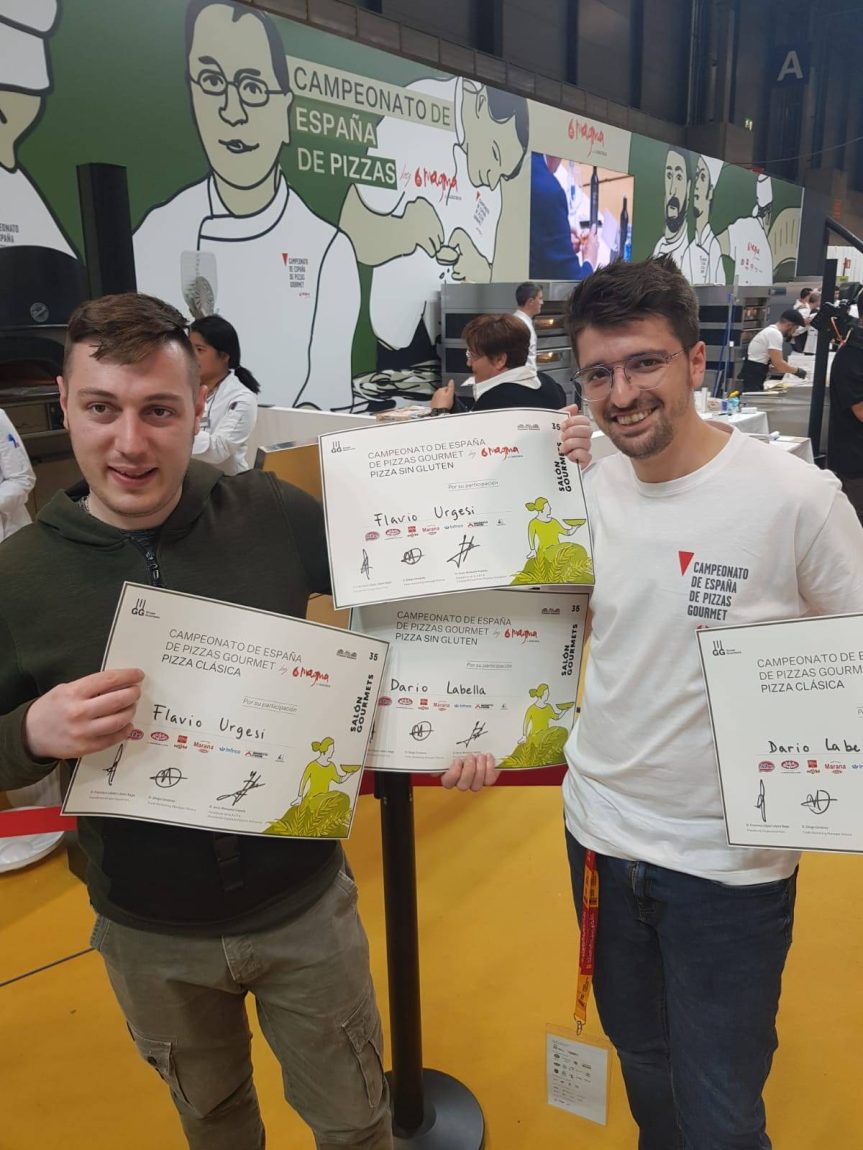 Flavio Urgessi, en la categoría Pizza clásica, ha conseguido un puesto entre las cinco mejores de España y Darío Labella, se ha llevado un doble podio de bronce, primero en la categoría clásica con su propuesta “Capriccio Gourmet”.