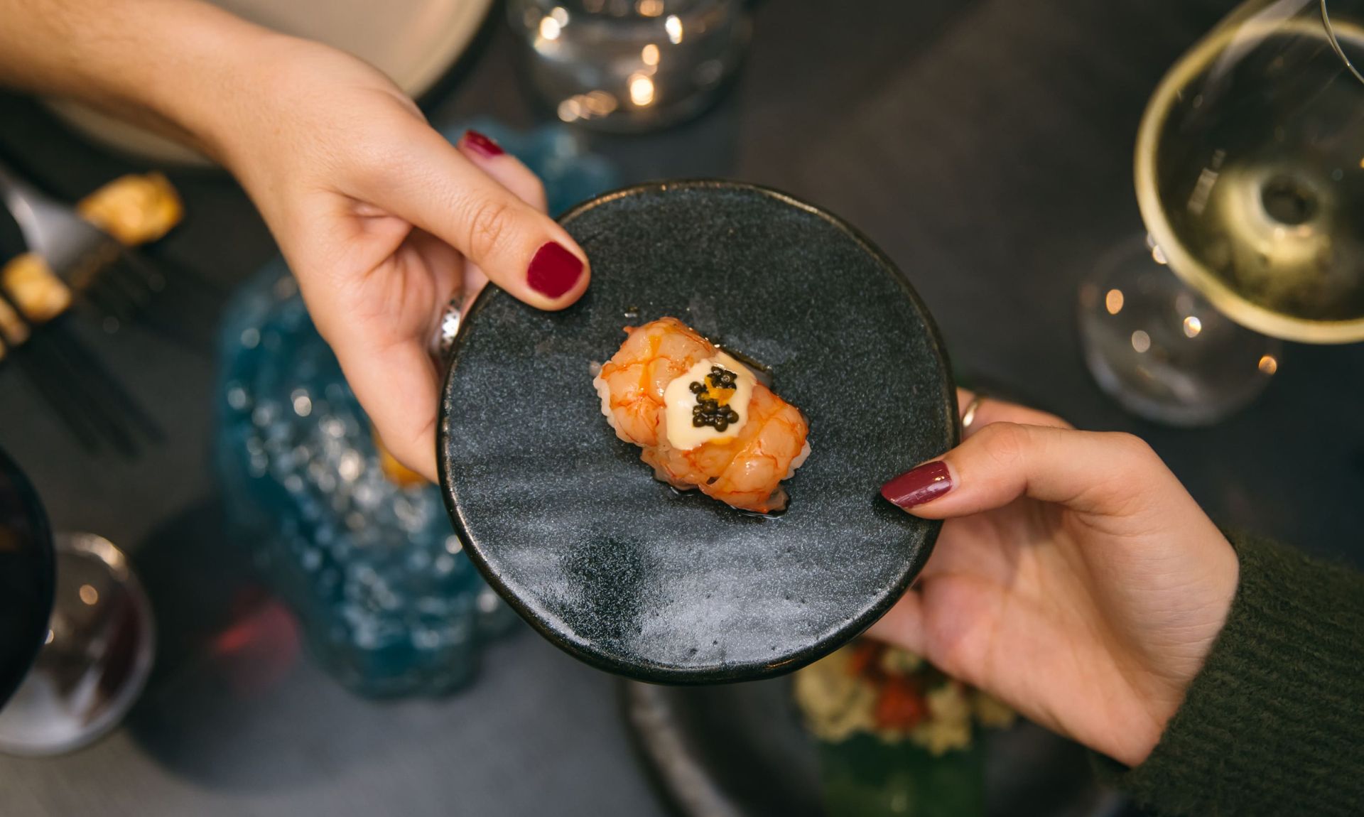 Con cocina abierta hasta las 23:00, los comensales pueden disfrutar en cualquier momento de la tarde de platos como el usuzukuri de hamachi, el tiradito de vieira braseado o el ceviche de la abuela. Destacan los nigiris de solomillo al lomo saltado, anguila de La Albufera al estilo kabayaki, huevo de codorniz con trufa negra o ventresca de atún Bluefin,