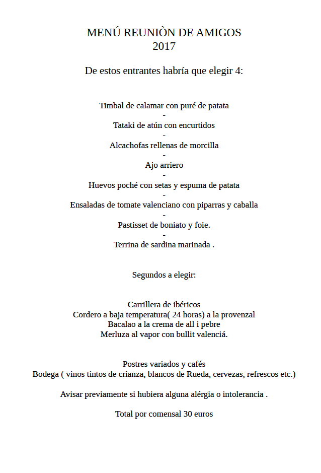 El restaurante Castillo, de Godella, tiene preparado un menú que ellos llaman “Reunión de amigos” y que facilita al comensal la posibilidad de confeccionar a su gusto los platos que podrán degustar en el restaurante que dirige Eduardo Frechina.