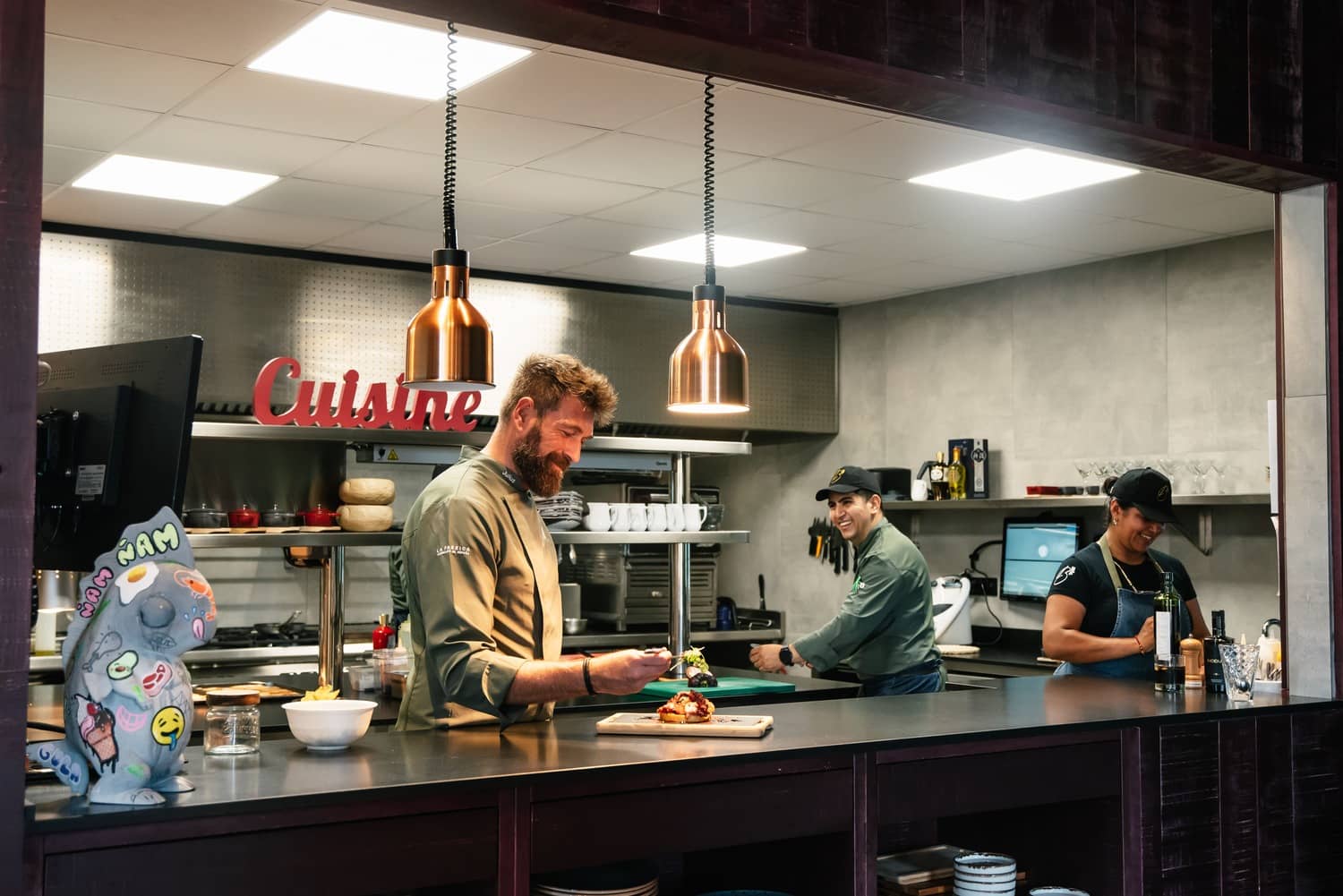Julius Bienert se ha situado al frente de la cocina de un proyecto innovador en muchos aspectos. El cocinero, habitual en espacios de diferentes plataformas de streaming y cadenas de televisión, no solamente aporta su experiencia culinaria y cercanía que siempre le caracteriza, sino también una red de proveedores y productos de primer nivel.
