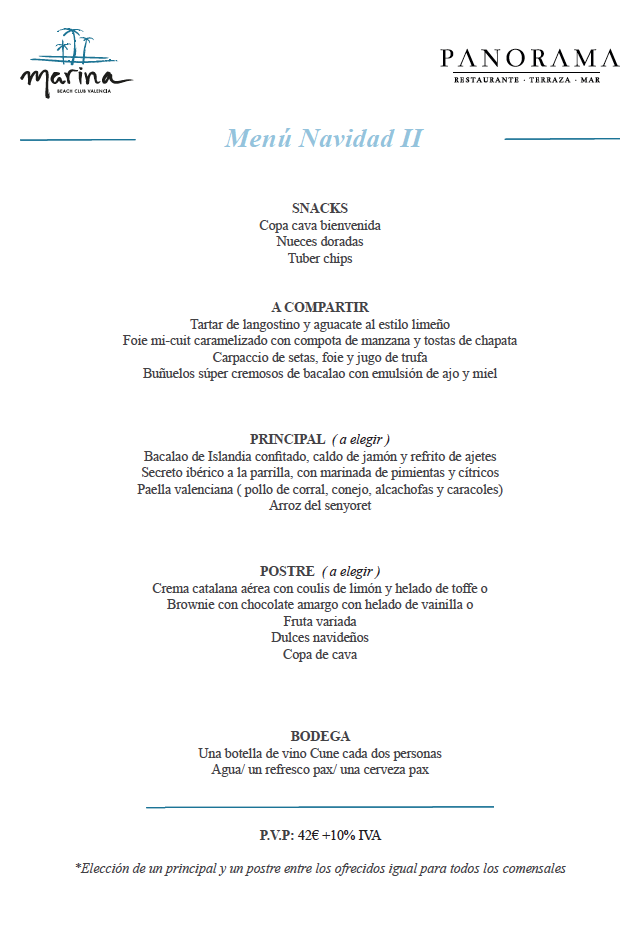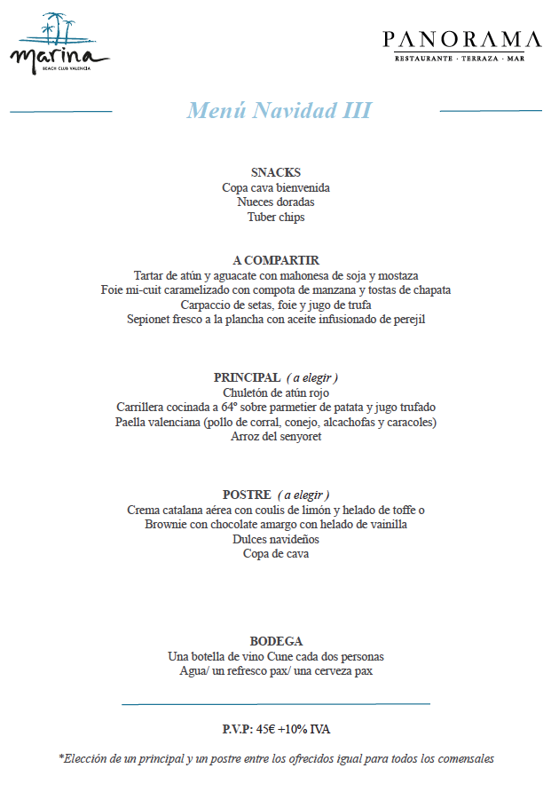 La cer­ca­nía al mar y al mari­ne­ro barrio del Caban­yal mar­can la esen­cia medi­te­rrá­nea de la ofer­ta gas­tro­nó­mi­ca de Mari­na Beach Club, que inclu­ye una bue­na selec­ción de vinos valen­cia­nos entre otras refe­ren­cias del res­to del pano­ra­ma eno­ló­gi­co nacio­nal e inter­na­cio­nal.