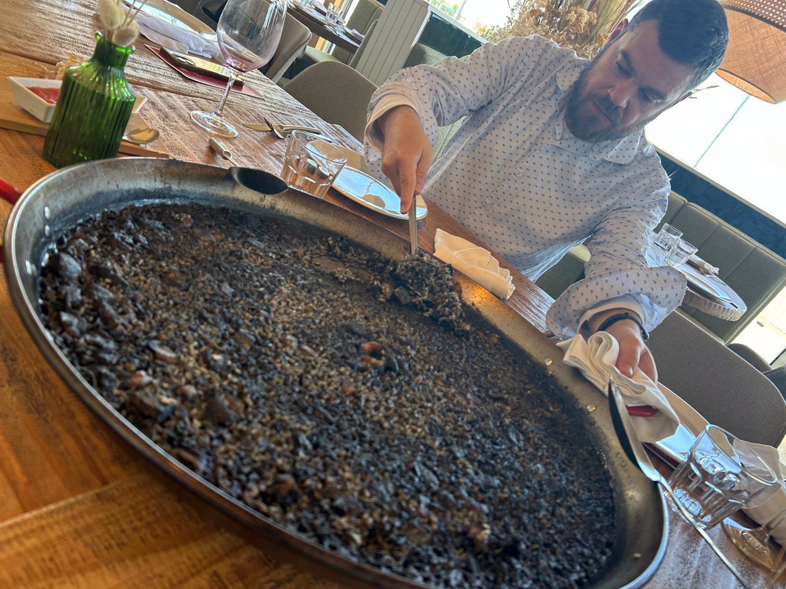 Enric Palan­ca, alcal­de de la Pobla de Far­nals, degus­tan­do el arroz negro