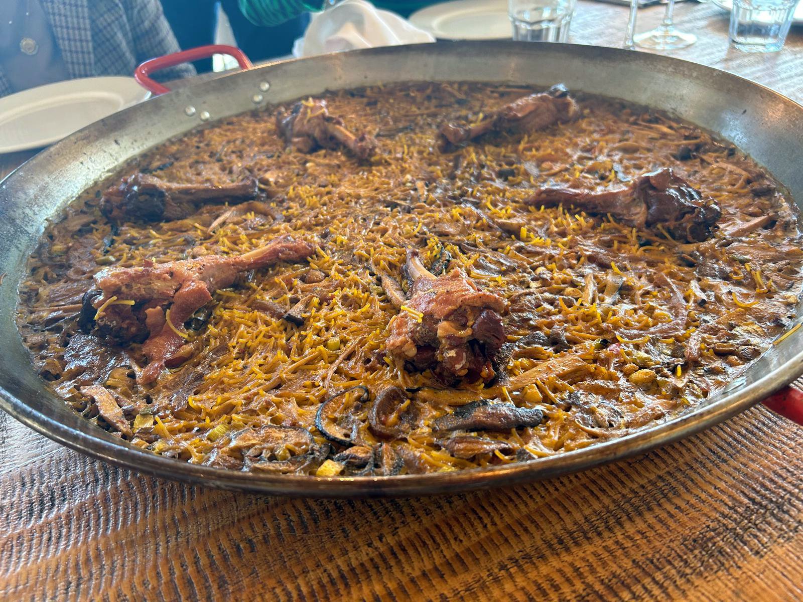 Prin­ci­pa­les: pae­lla valen­cia­na, arroz negro con cazón y gam­bas, fideuà de pato con setas, ajos tier­nos y tru­fa.