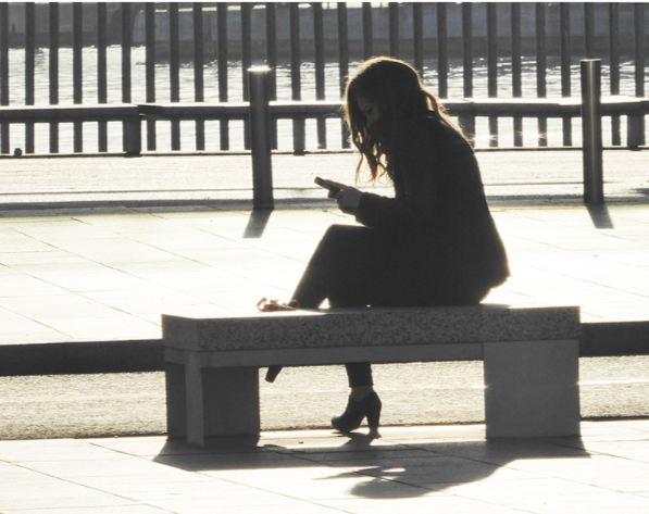 Eje­cu­ti­va de empre­sa tra­ba­jan­do en la calle con su smartpho­ne. Foto: Adol­fo Pla­sen­cia