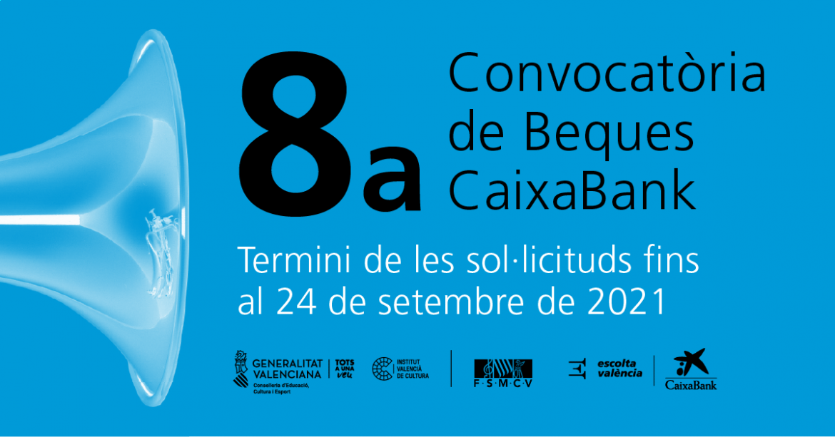 El Institut Valencià de Cultura,CaixaBank y la Federación de Sociedades Musicales de la Comunidad Valenciana (FSMCV) convocan la octava edición de becas dirigidas al alumnado de los centros educativos de las sociedades musicales de la Comunitat Valenciana, que para el curso 2021–2022 cuenta con una dotación económica de 300.000 euros.