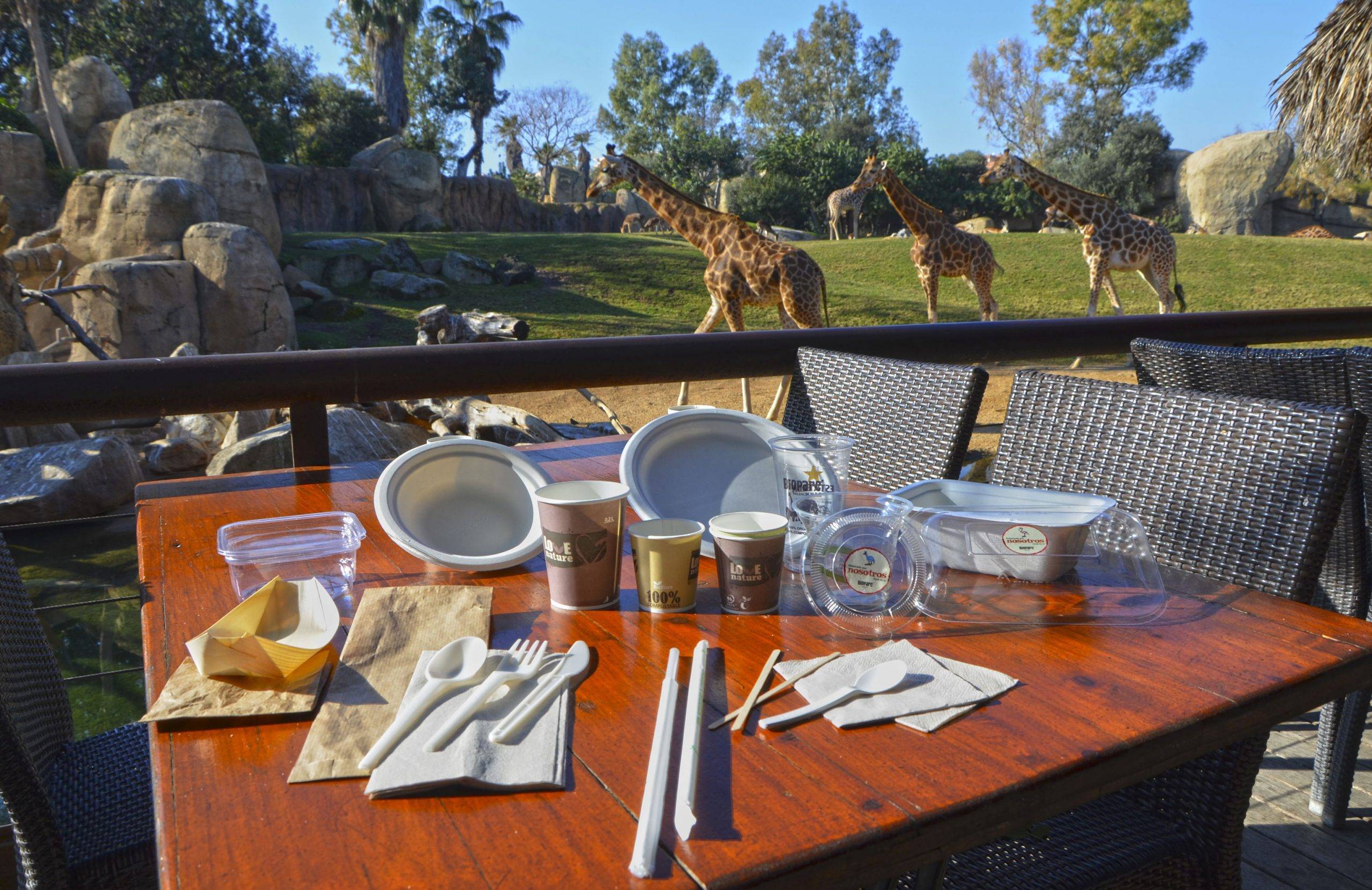 Todo el mena­je que hoy pue­de ver­se en los res­tau­ran­tes del inte­rior de Bio­parc, aun­que parez­ca plás­ti­co, es com­pos­ta­ble y en este perio­do, cer­ca de 30 metros cúbi­cos de resi­duos se han depo­si­ta­do en los con­te­ne­do­res marro­nes de mate­ria orgá­ni­ca que en 12 sema­nas se con­vier­te en com­post para el cul­ti­vo o abono de sue­los. Una medi­da más que refuer­za el obje­ti­vo de “cam­biar con­duc­tas” y con­cien­ciar sobre la nece­si­dad de rea­li­zar un con­su­mo res­pon­sa­ble y sos­te­ni­ble con el pla­ne­ta.