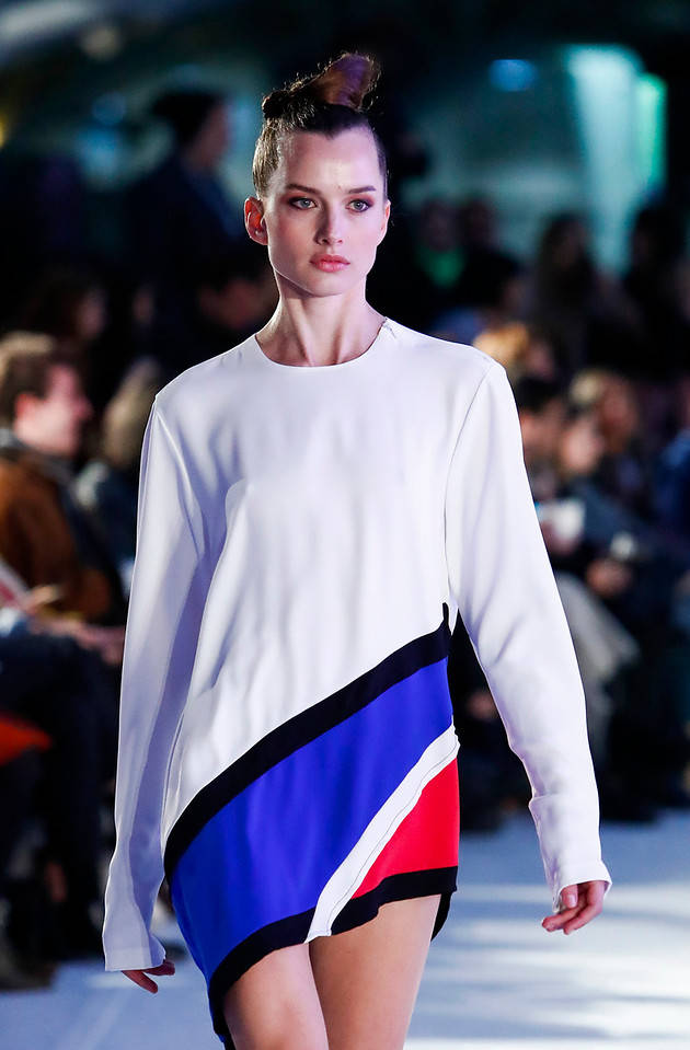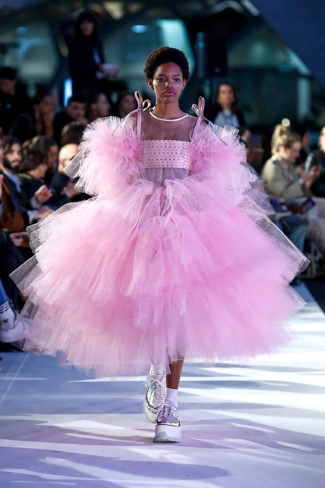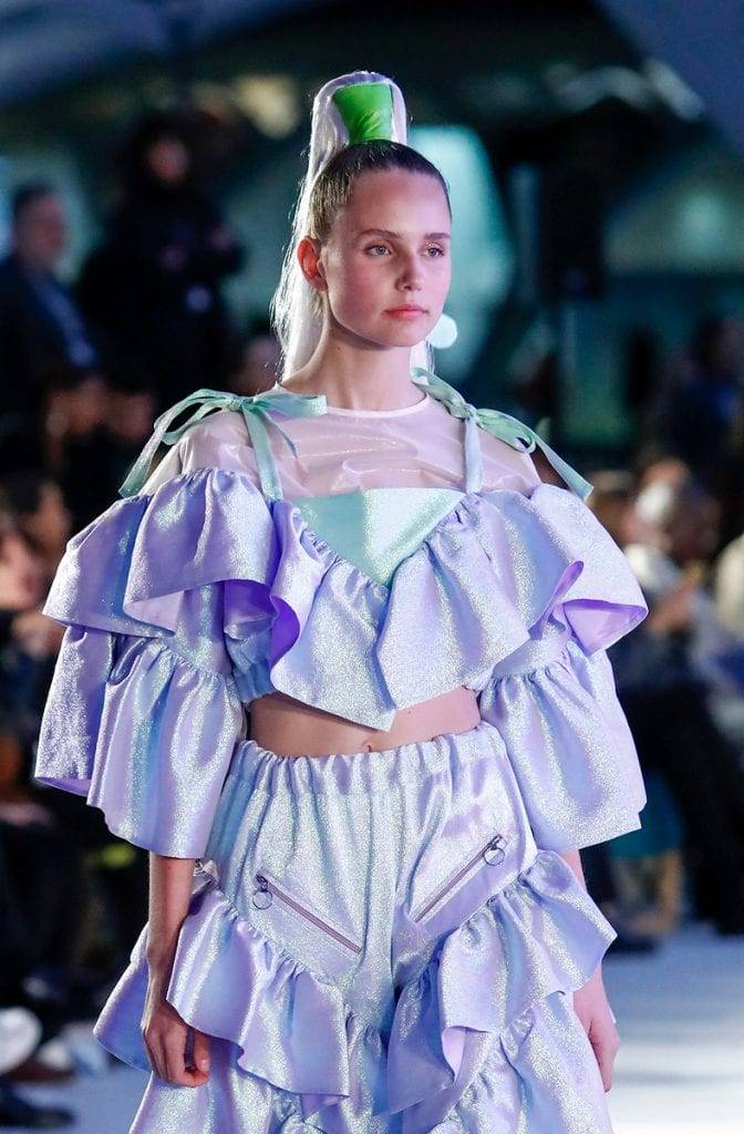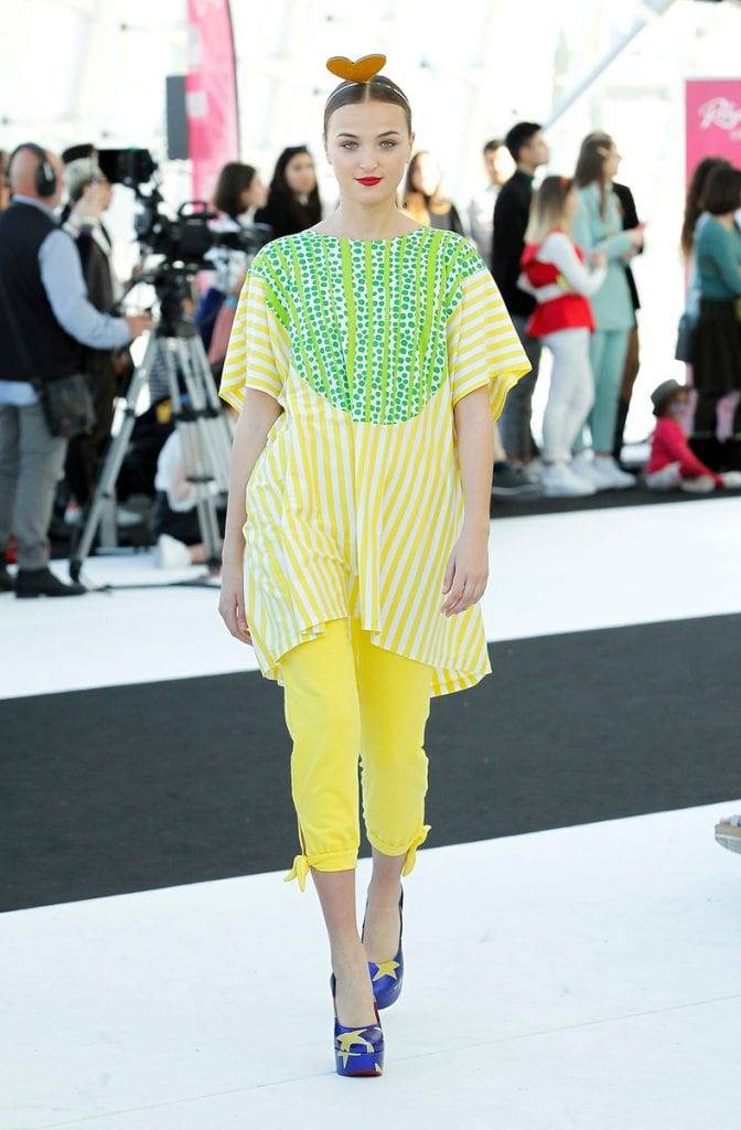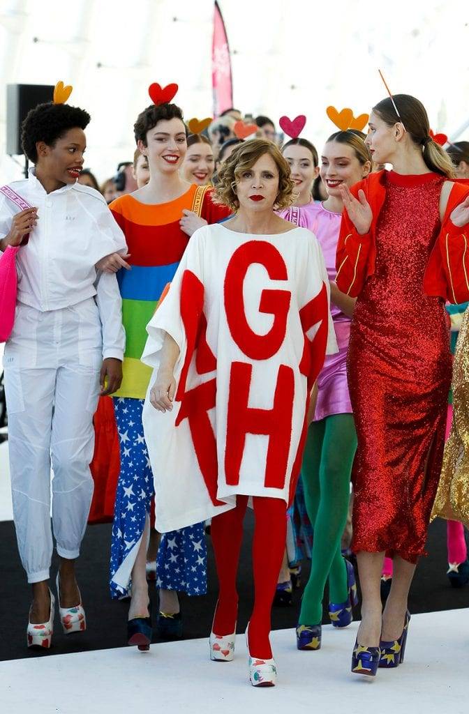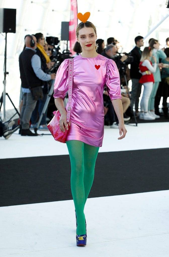 Como nos tiene acostumbrados, el optimismo, la vitalidad y el torrente de color llegó a cargo de la inimitable Ágatha Ruiz de la Prada. Una colección energética, que jugaba con sus estampados más emblemáticos como los corazones o las estrellas, y los combinaba con prints gráficos, lunares y arcoíris. Todo ello en forma de vestidos o sudaderas, con una fuerte presencia de los complementos, como bolsos y originales zapatos de salón.