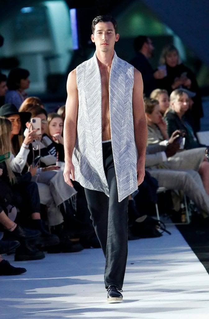 Miquel Suay, Director de CLEC, sorprendió con una sofisticada propuesta para hombre y para mujer llena de modernidad en tonos neutros como el terracota, negro o azul marino; combinado con otras tonalidades más vibrantes como el rojo o el verde lima. Sus inconfundibles estampados abstractos inundaron los trajes de chaquetas, camisetas urbanas, camisas y largos abrigos.