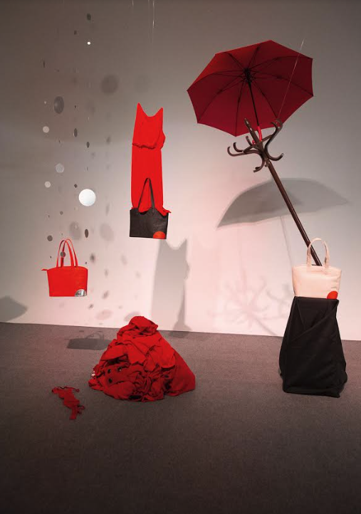 Cin­co bol­sos sus­pen­di­dos a dife­ren­tes altu­ras inter­ve­ni­dos artís­ti­ca­men­te lle­na­ban el espa­cio. Una cas­ca­da de luces, un árbol, una cor­ti­na de espe­jos, un ves­ti­do y un per­che­ro bro­ta­ban de cada uno de los bol­sos ponien­do el énfa­sis en la impor­tan­cia de su capa­ci­dad inte­rior.