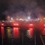 En total, 1.200 kg de mate­rial piro­téc­ni­co que sir­vie­ron para crear rit­mos, luces y colo­res en una pro­pues­ta que no encon­tró obs­tácu­los visua­les ni audi­ti­vos, gra­cias a este nue­vo empla­za­mien­to que, ade­más, ofre­ció el refle­jo sobre el mar a las figu­ras que las explo­sio­nes iban dibu­jan­do sobre el fir­ma­men­to.