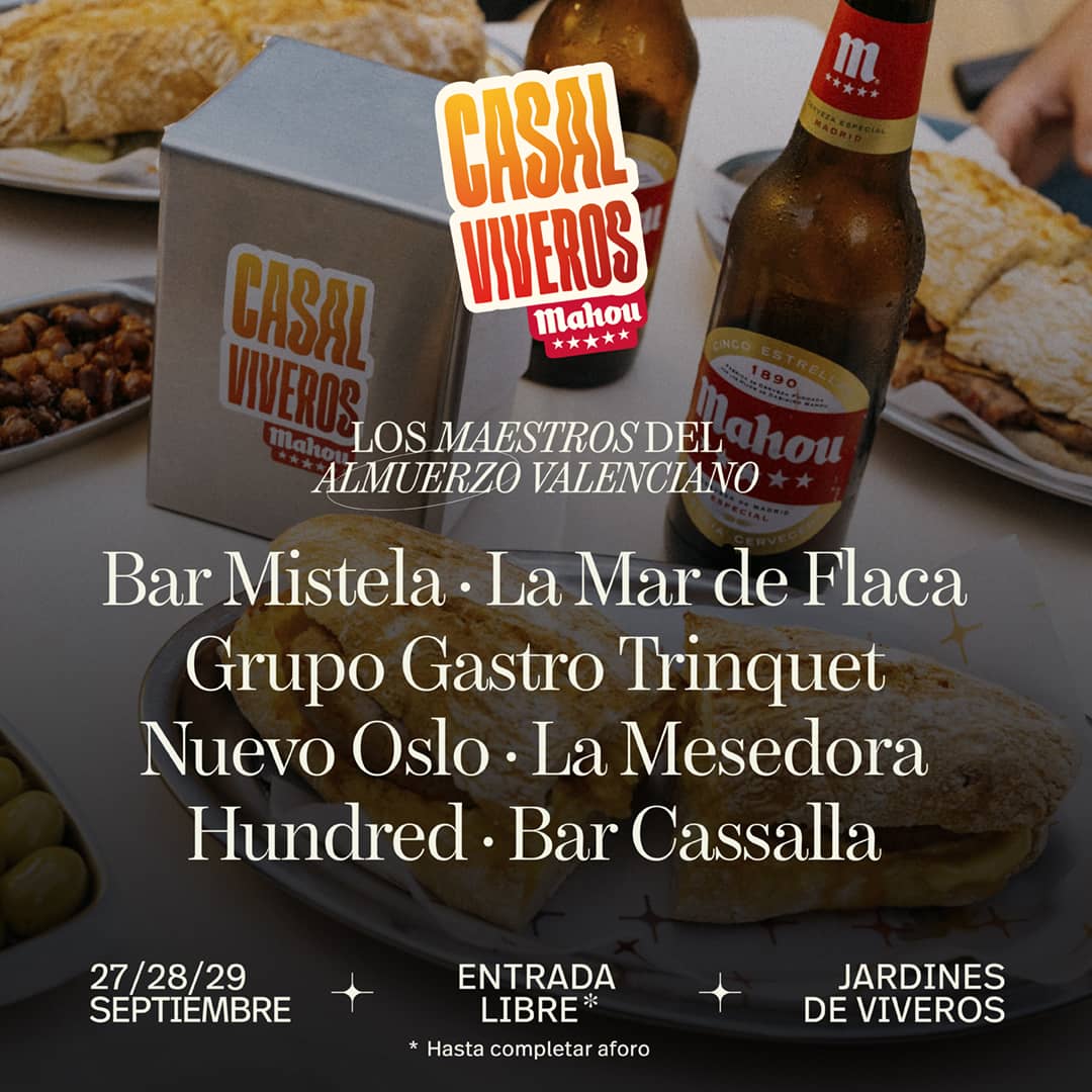 Del 27 al 29 de septiembre, los emblemáticos Jardines de Viveros se convertirán en el epicentro de la cultura valenciana con el regreso de Casal Viveros Mahou. El evento, que fue suspendido en febrero como muestra de respeto tras el incendio de Campanar, vuelve con fuerza para ofrecer una programación repleta de música en directo, experiencias cerveceras y una variada agenda de actividades de ocio para todos los gustos. Durante tres días, y fruto de la colaboración entre Mahou y Grupo Comboi, los asistentes podrán disfrutar de un encuentro único. La entrada será libre y gratuita.
