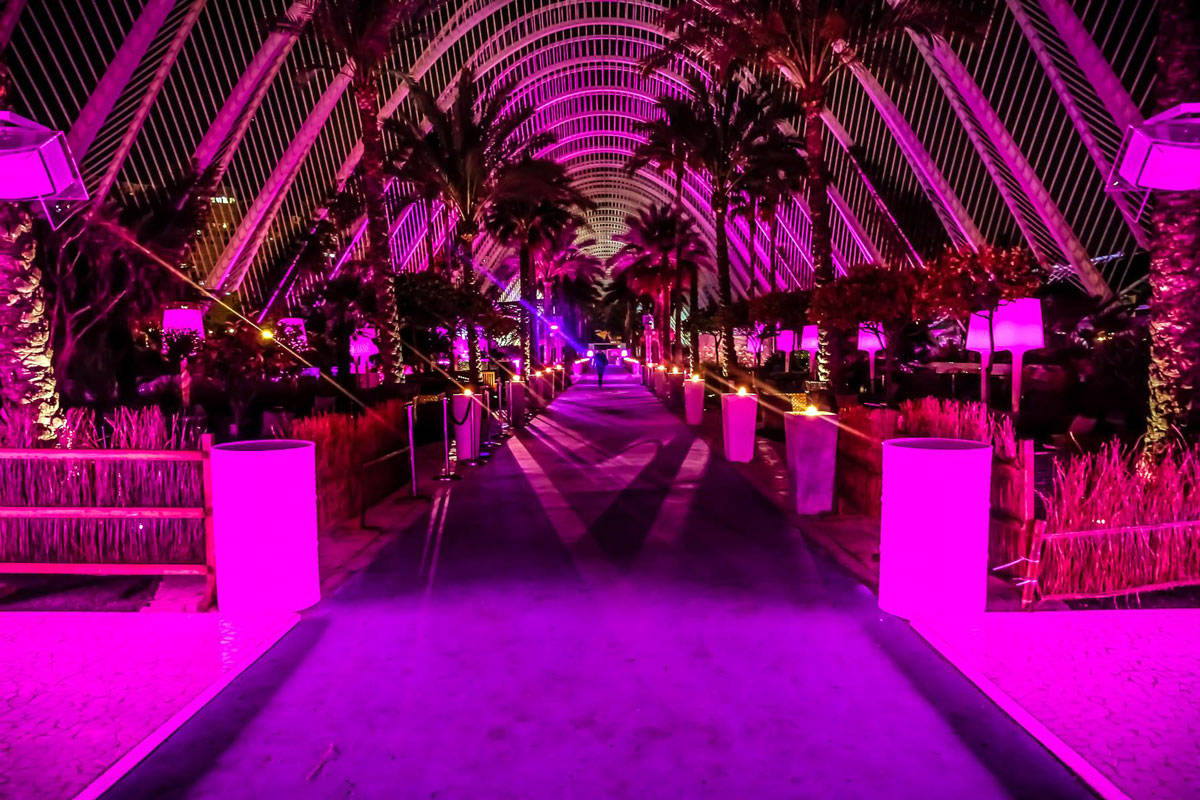 Asi­mis­mo, la terra­za L’Umbracle, colum­na ver­te­bral de la Ciu­dad de las Artes y las Cien­cias, recrea una atmós­fe­ra espe­cial lle­na de encan­to a la luz de la luna, ideal para todo tipo de even­tos.