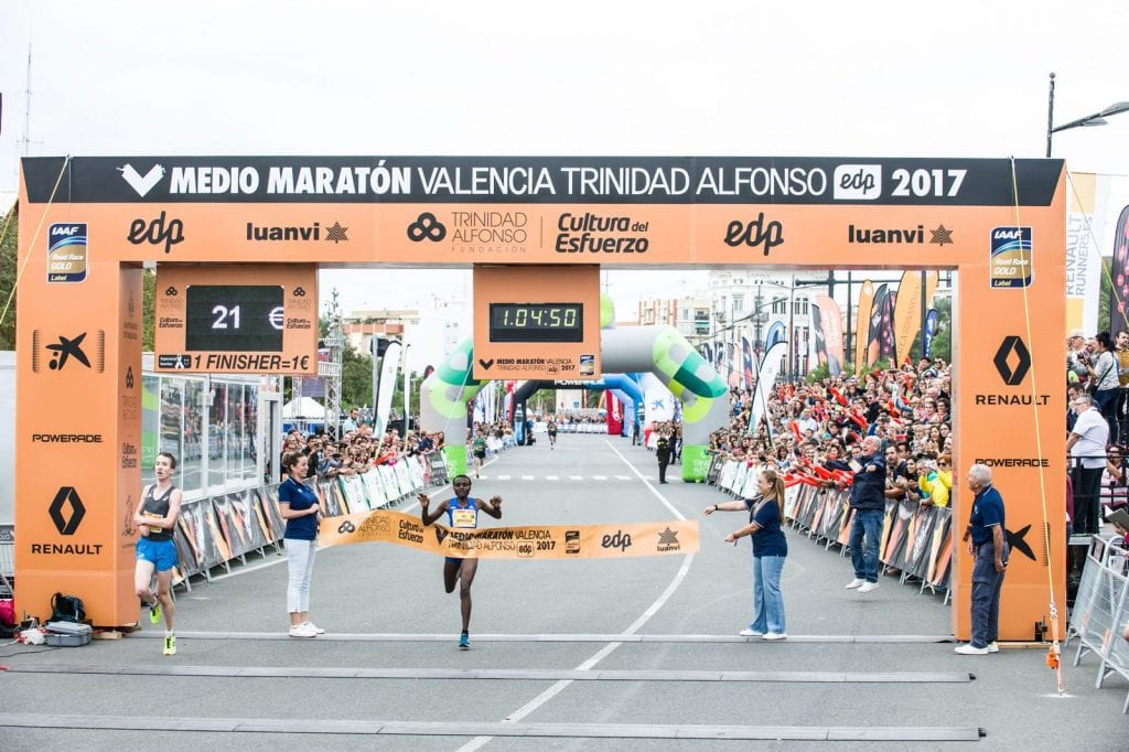 El Medio Maratón Valencia Trinidad Alfonso EDP ha establecido un nuevo récord mundial en la distancia de 21.097,5 metros. La marca de Joyciline Jepkosgei, primera corredora en alcanzar la meta con un tiempo de 1:04:51, supone el mejor registro histórico del medio maratón valenciano, convirtiendo la prueba en la más rápida del mundo, superando el anterior récord femenino en medio maratón, también de Jepkosgei (Praga, 2017).