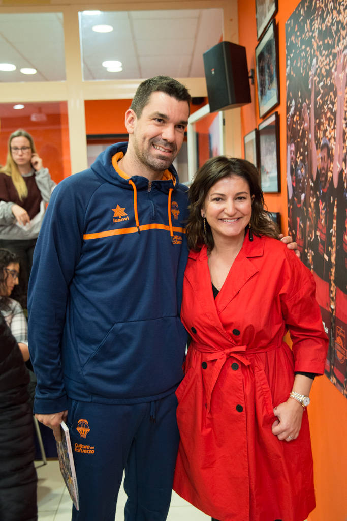 El capitán del Valencia Basket junto a Ángela Pla, directora de Elca, editorial del libro.