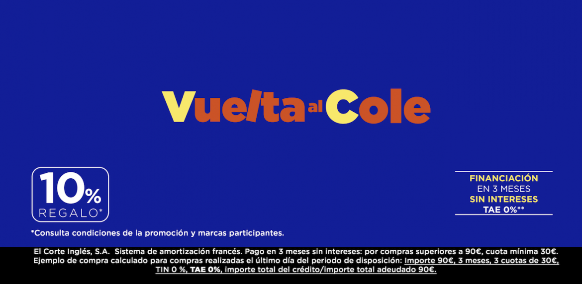El Corte Inglés lanza su campaña “Vuelta el Cole” con grandes descuentos en todos los artículos necesarios para comenzar el curso escolar, con más financiación y facilidades que nunca para las familias. Mochilas, chándales, uniformes, material escolar, libros de texto, zapatos, abrigos, zapatería deportiva, moda infantil, etc… forman parte de la propuesta comercial que la compañía ha lanzado este año para comenzar el cole muy bien equipado.