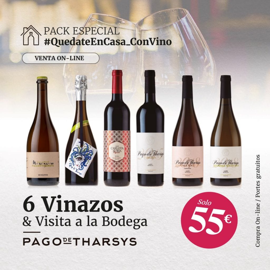 El vino es una parte fundamental en nuestra dieta mediterránea y en nuestro estilo de vida. Por ello, desde Pago de Tharsys proponen el pack especial quedateencasa_convino, que incluye:
