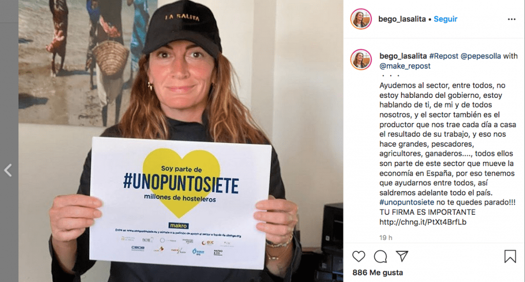 Todos los chefs y res­tau­ran­tes se han vis­to afec­ta­dos por este cie­rre, pero tal vez la situa­ción es toda­vía más gra­ve para aque­llos que aca­ba­ban de abrir sus puer­tas o para los que lo tenían todo lis­to para hacer­lo en bre­ve. Una de ellas era la valen­cia­na Bego­ña Rodri­go. La pro­pie­ta­ria de La Sali­ta (una estre­lla Miche­lin) aca­ba­ba de anun­ciar la aper­tu­ra, el 29 de abril, de su nue­vo res­tau­ran­te, “El Huer­to”, ubi­ca­do en la calle Pedro III el Gran­de, en el barrio de Ruza­fa, y en el que se pro­po­nía dar un pro­ta­go­nis­mo espe­cial a las ver­du­ras y ense­ñar a los clien­tes a comer de una for­ma salu­da­ble. No obs­tan­te, aho­ra, des­de el con­fi­na­mien­to y a tra­vés de sus redes socia­les, anun­cia que se suma a la cam­pa­ña #uno­pun­to­sie­te. Esta es una pla­ta­for­ma que reúne a las prin­ci­pa­les orga­ni­za­cio­nes del sec­tor de la hos­te­le­ría en Espa­ña, el cual se esti­ma que da tra­ba­jo, pre­ci­sa­men­te, a 1,7 millo­nes de per­so­nas en nues­tro país. Median­te esta pla­ta­for­ma quie­ren man­dar un men­sa­je de áni­mo a todas las per­so­nas vin­cu­la­das a la hos­te­le­ría y tam­bién recla­mar medi­das espe­cí­fi­cas a las admi­nis­tra­cio­nes públi­cas para lograr salir de esta situa­ción de la mejor for­ma posi­ble. En su pági­na web www.unopuntosiete.esse pue­den ver sus peti­cio­nes, así como acce­der a una cam­pa­ña de fir­mas al res­pec­to lan­za­da en change.org y tam­bién des­car­gar­se el car­tel de apo­yo y un infor­me sobre el impac­to del Covid-19 en la hos­te­le­ría.