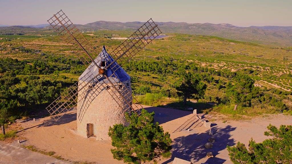 Antes de irte no dejes de admirar el impresionante paisaje que te ofrecen los 903 metros de altitud del cerro. Sus campos con bancales de almendros y olivos me recuerdan las colchas de patchwork, donde cada campo es un retal de esta inmensa y cuidada colcha.