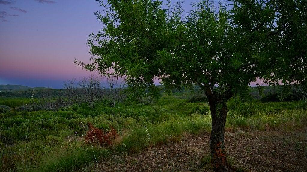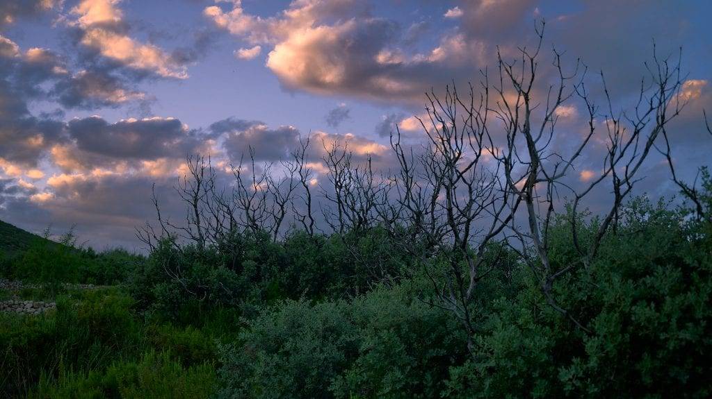 Es realmente impactante ver el verde de los almendros junto a los arbustos quemados que comienzan a renacer llenando nuevamente de vida el monte quemado.