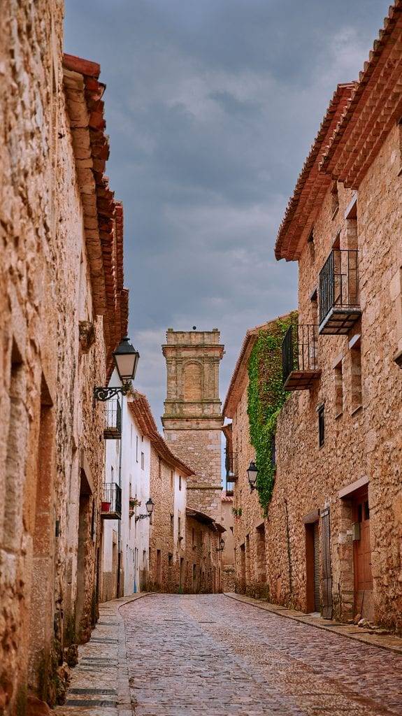 Desde la Plazuela de la Iglesia del Salvador, no solo tienes unas espectaculares vistas de la llanura del Alto Maestrazgo, sino que puedes observar el campanario de la iglesia con sus tres campanas: la más pequeña se llama Santa Bárbara, la mediana es del 1732 y la Grossa es del 1404.