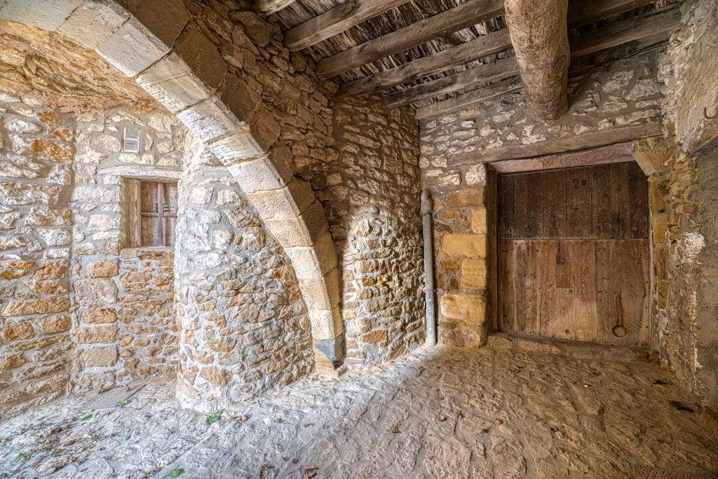 - El Perxet, la suma de su arco apuntado del siglo XIV, el entramado del techo dejando ver sus gruesas vigas de madera, la puerta con su división y aderezada con las anillas para atar los animales la convierten en la joya de Culla.