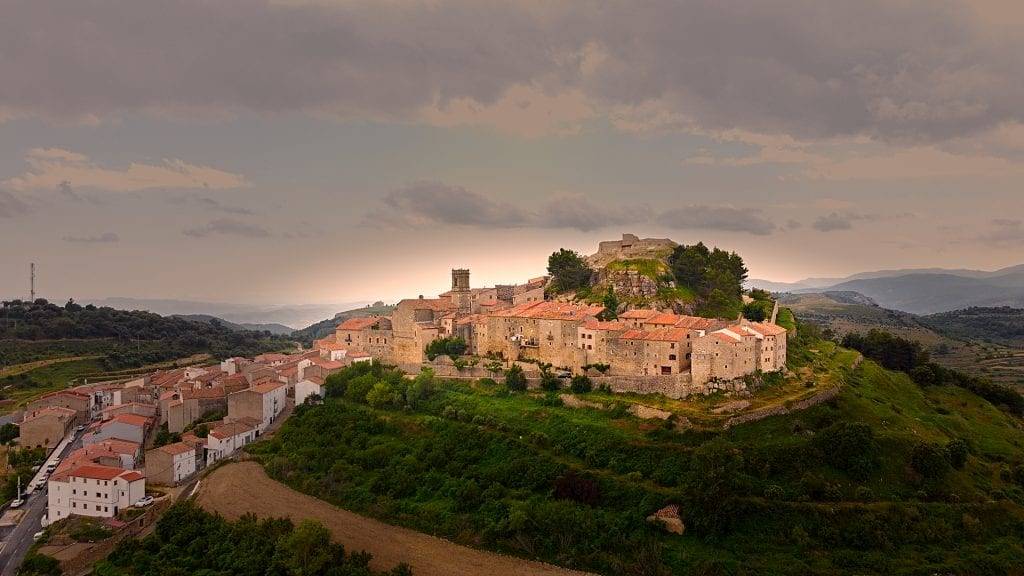 - Coronando sus 1123 metros de altura, los restos de su castillo son de los siglos XI y XII. Es de origen musulmán, solo podrás ver sus cimientos ya que durante la guerra carlista, fue arrasado. En el vídeo y, gracias a nuestro dron, puedes ver la Torre de Frare Pere o la entrada a la Barbacana.