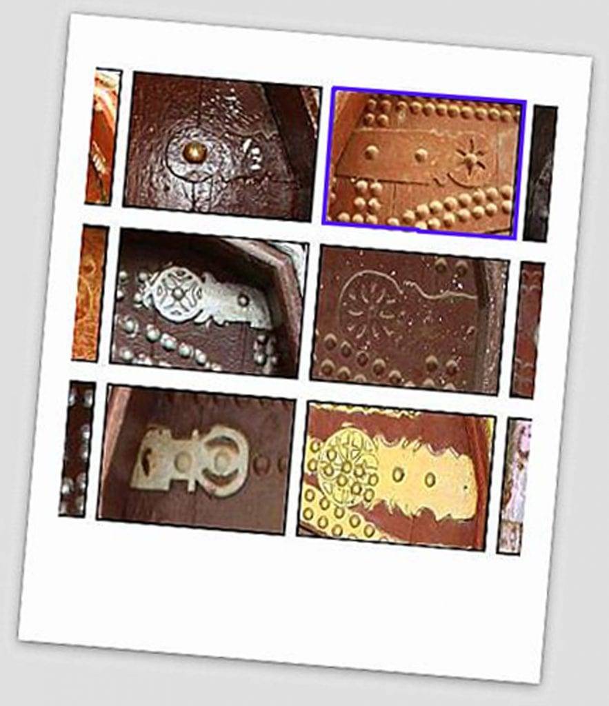. El tirador o dakkaka, es una pieza ornamental de la puerta que le da notoriedad al conjunto. Está compuesto por tres piezas, dos fijas a la puerta con forma de estrella circular y la tercera que es un aro macizo con diseño en su perímetro.
