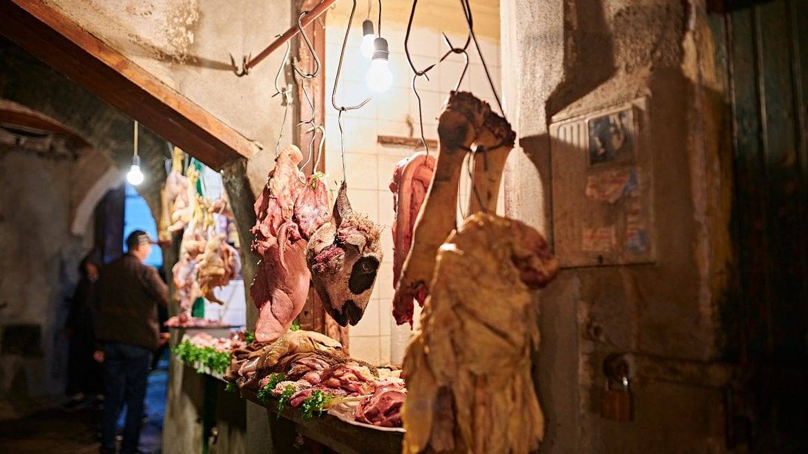 La zona de alimentación para mí fue lo más llamativo, encontrar aves vivas para que uno escoja la que prefiere degustar en su mesa, cabezas de corderos colgadas de ganchos sin ningún tipo de refrigeración, pescados en barreños sobre el suelo, verduras frescas y variadas.