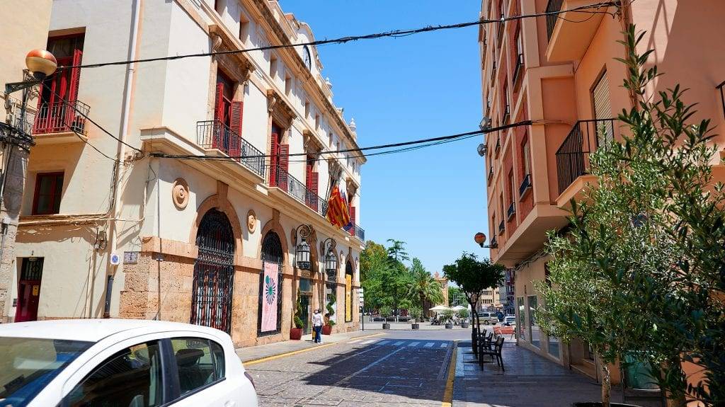 Ya hemos recuperado fuerzas. ¿Proseguimos? En pocos minutos llegaremos al centro de Sagunto. Comenzamos a ascender desde su plaza del Cronista Chabret para conocer esta histórica ciudad. Lo primero que encontramos en un edifico del siglo XVIII, el ayuntamiento.