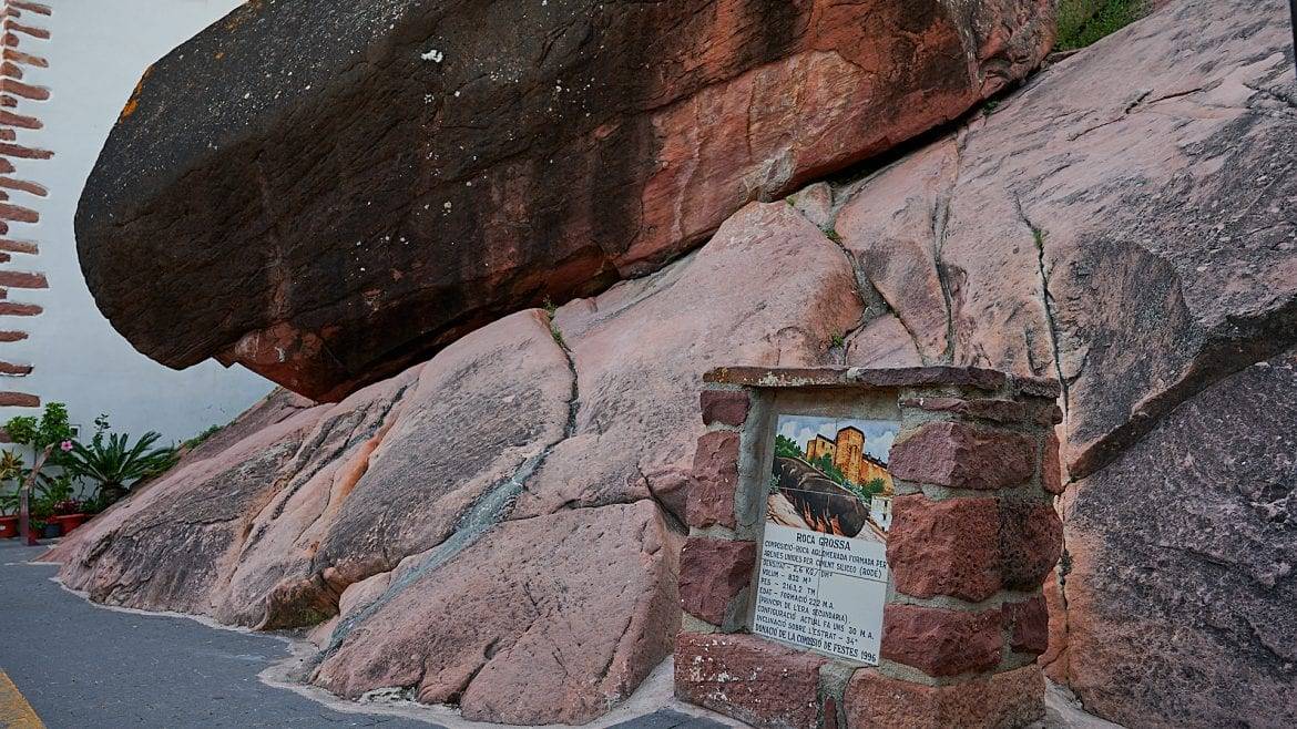 Ya saben que a mí me gusta callejear, caminar, dejándome llevar por lo que me atrae visualmente, y lo primero que llamó mi atención fue la Roca Grossa. Esta enorme roca de rodeno se encuentra ubicada en la calle de la Font, a los pies de la Iglesia de la Asunción. De ella destacan los 34 grados de inclinación, su tamaño, unos 832 metros cúbicos, y que pesa aproximadamente unos 2.163.200 kg. La mente no asimila que no se desplace, aunque a mí me impresiona más su grandiosidad.