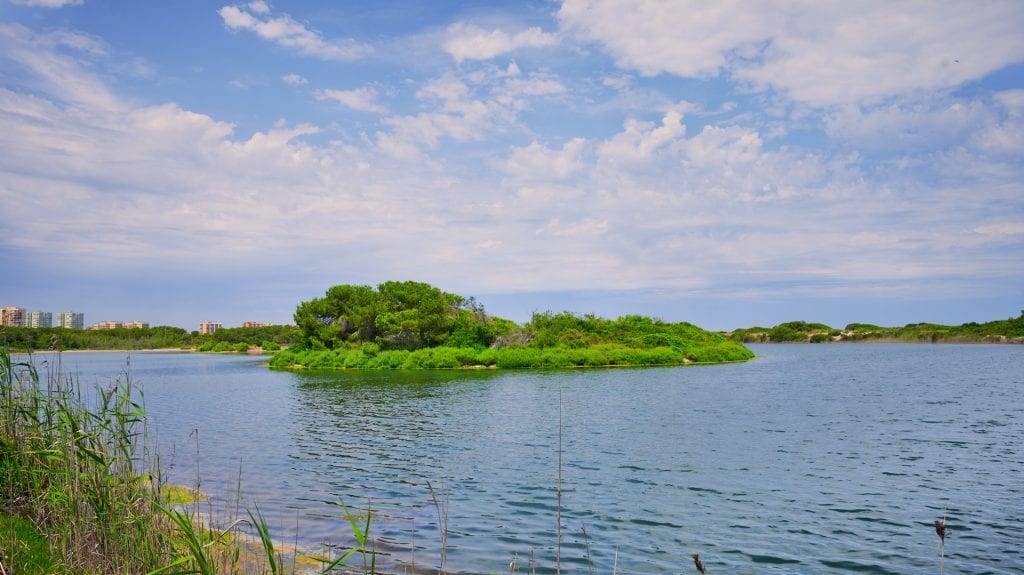 El lago conocido como Estany de Pujol, se creó en 1965, según la época del año podrás ver distintas aves, que lo utilizan en sus migraciones como zona de descanso y alimentación. Lo visitan los simpáticos anades reales, las majustuosas garzas reales, y los coloridos flamencos. Aunque es un lago artificial, su agua es salada, por ello su vegetación es propia de saladares y destacan el junco, siemprevivas o la alacranera. ¿Sabías, que se creó con la finalidad de ser un puerto deportivo.