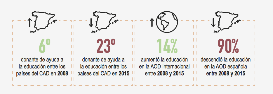 La comunidad internacional no ha dejado de incrementar su inversión en cooperación internacional hasta 2018 a pesar de la crisis económica, aumentando sus fondos en un 55% de 2007 a 2018. Sin embargo, en España ha ocurrido todo lo contrario y desde 2009 la cooperación española no ha dejado de caer, siendo una de las políticas públicas que más recortes ha sufrido reduciéndose casi a la mitad entre 2008 (4.760 millones de euros) y 2018 (con 2.449 millones de euros).
