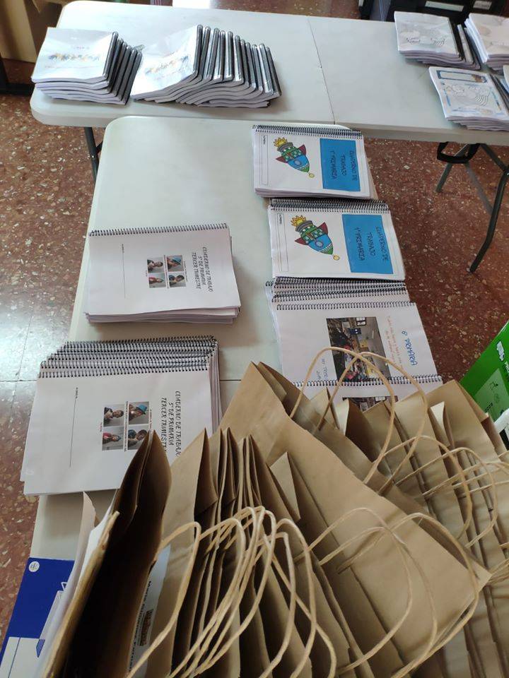 Al alumnado de ESO se le proporcionaron portátiles o tablets gracias a diversas gestiones del centro, pero el alumnado de los últimos cursos de primaria y primero de ESO necesitaba de material impreso.