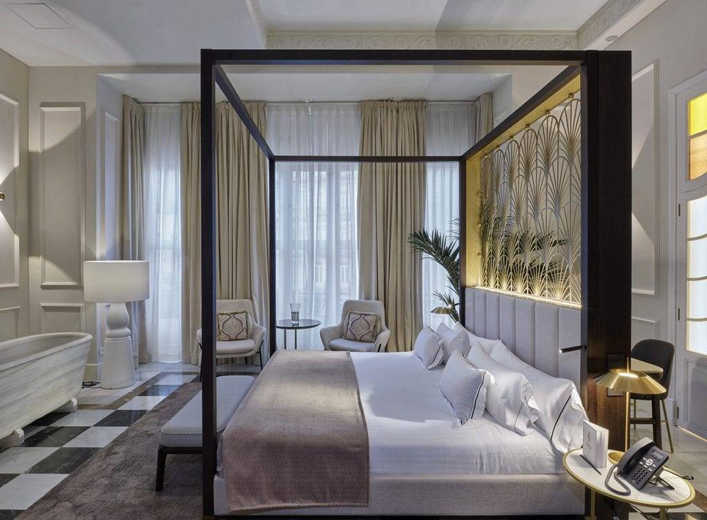 El con­cep­to del dise­ño del hotel Pala­cio Vallier par­te de la pre­mi­sa prin­ci­pal de plas­mar un hotel atem­po­ral que res­pe­ta los ele­men­tos ori­gi­na­les del edi­fi­cio, mez­clán­do­los con ele­men­tos con­tem­po­rá­neos uti­li­zan­do tex­tu­ras y colo­res natu­ra­les con mate­ria­les nobles que apor­tan sobrie­dad y con­fort en todos los espa­cios. La deco­ra­ción barro­ca y los deta­lles deco­ra­ti­vos del movi­mien­to artís­ti­co Art decó se fun­den con colo­res cáli­dos y natu­ra­les que se com­bi­nan en per­fec­ta sin­to­nía.