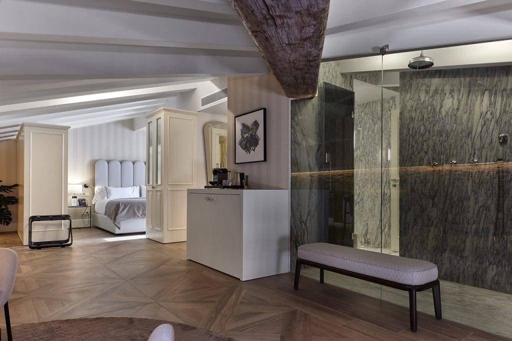 Las habi­ta­cio­nes y sui­tes ofre­cen un equi­pa­mien­to de lujo con sue­los cerá­mi­cos y baños reves­ti­dos con már­mol de carra­ra, cor­ta­do y colo­ca­do en for­ma de libro, pro­ce­den­te de Ita­lia. Los ame­ni­ties de la famo­sa fir­ma Guer­lain son exclu­si­vos del hotel.