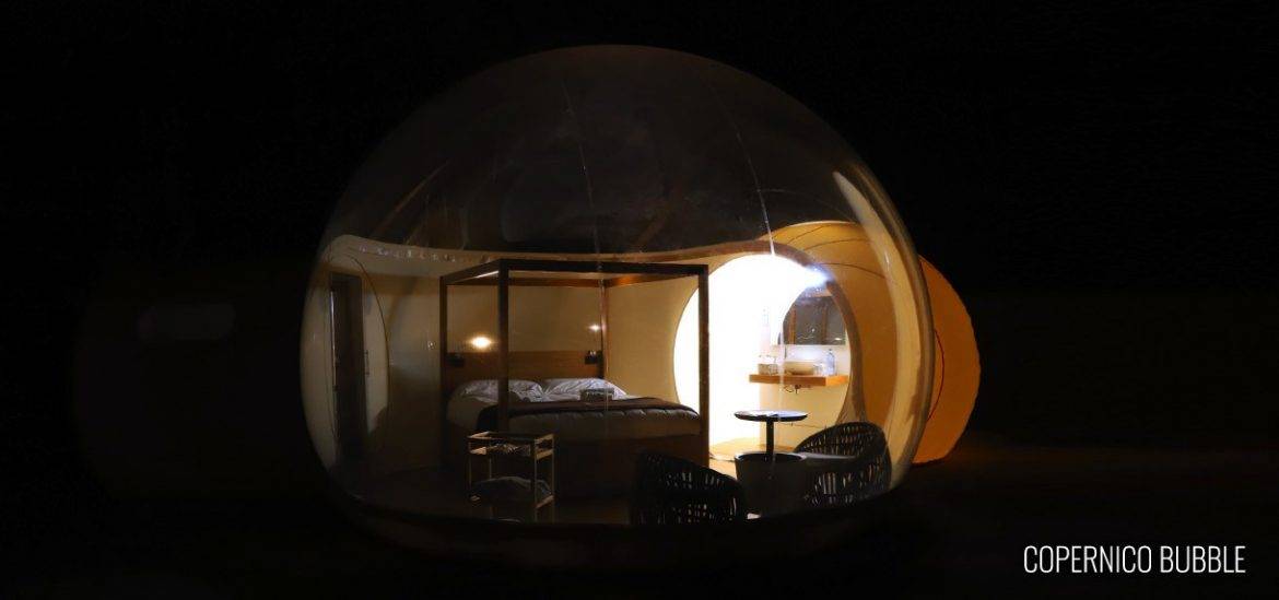 Estas bubbles, que son cápsulas transparentes, están pensadas para dormir a la “intemperie” pero “con la privacidad suficiente y el lujo para que te sientas tán cómodo como en un hotel con todos los servicios y amenities”, explican desde el hotel.