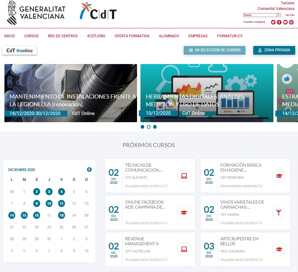 Turis­me Comu­ni­tat Valen­cia­na ha lan­za­do la nue­va web de la Red de Cen­tros de Turis­mo de la Comu­ni­tat (CdT) para acer­car la for­ma­ción turís­ti­ca gra­tui­ta de una “for­ma atrac­ti­va, ágil, sen­ci­lla, diná­mi­ca, intui­ti­va, más visual y adap­ta­da a las últi­mas nove­da­des tec­no­ló­gi­cas”, según sus res­pos­na­bles.